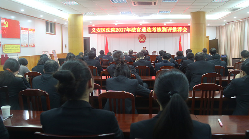 10月18日下午,义安区法院召开2017年法官遴选考核测评推荐会,院全体正式干警参加了会议。