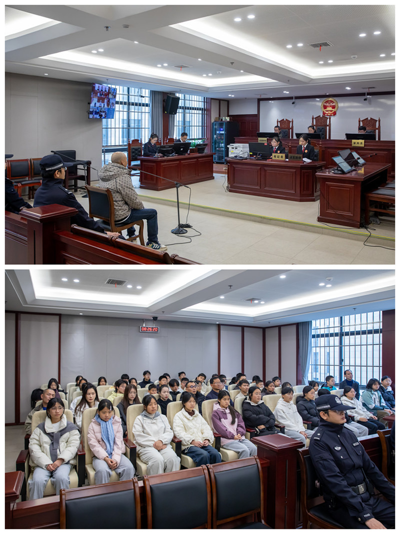 上午8时许,学生们怀着激动与好奇的心情抵达法院。在法院工作人员的引导和讲解下,同学们首先有序步入庄严肃穆的审判法庭,旁听了一场经过精心筛选、适合青少年观摩的刑事案件庭审。从宣布法庭纪律、核对被告人身份,到法庭举证、法庭辩论,直至最后陈述,整个庭审过程严谨规范、秩序井然。同学们凝神静听,神情专注,目光中流露出对法律程序的敬畏。“这是我第一次亲眼看到真实的法庭,法官很威严,整个流程非常严格,让我真切感受到了法律的公正和严肃。”一位同学在旁听结束后感慨道。